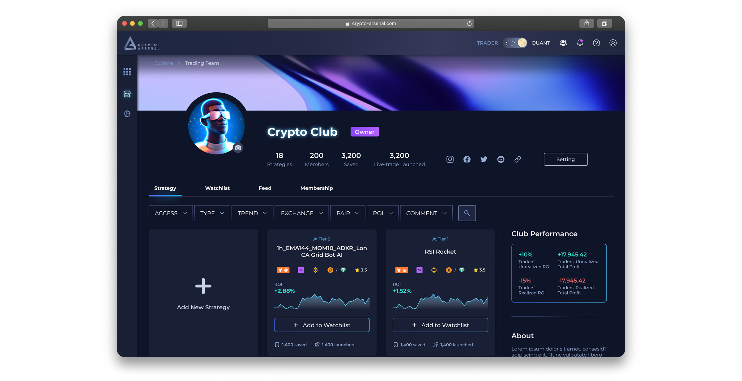 I introduced a tiered membership system that made strategy access clearer for users and more flexible for lead traders.