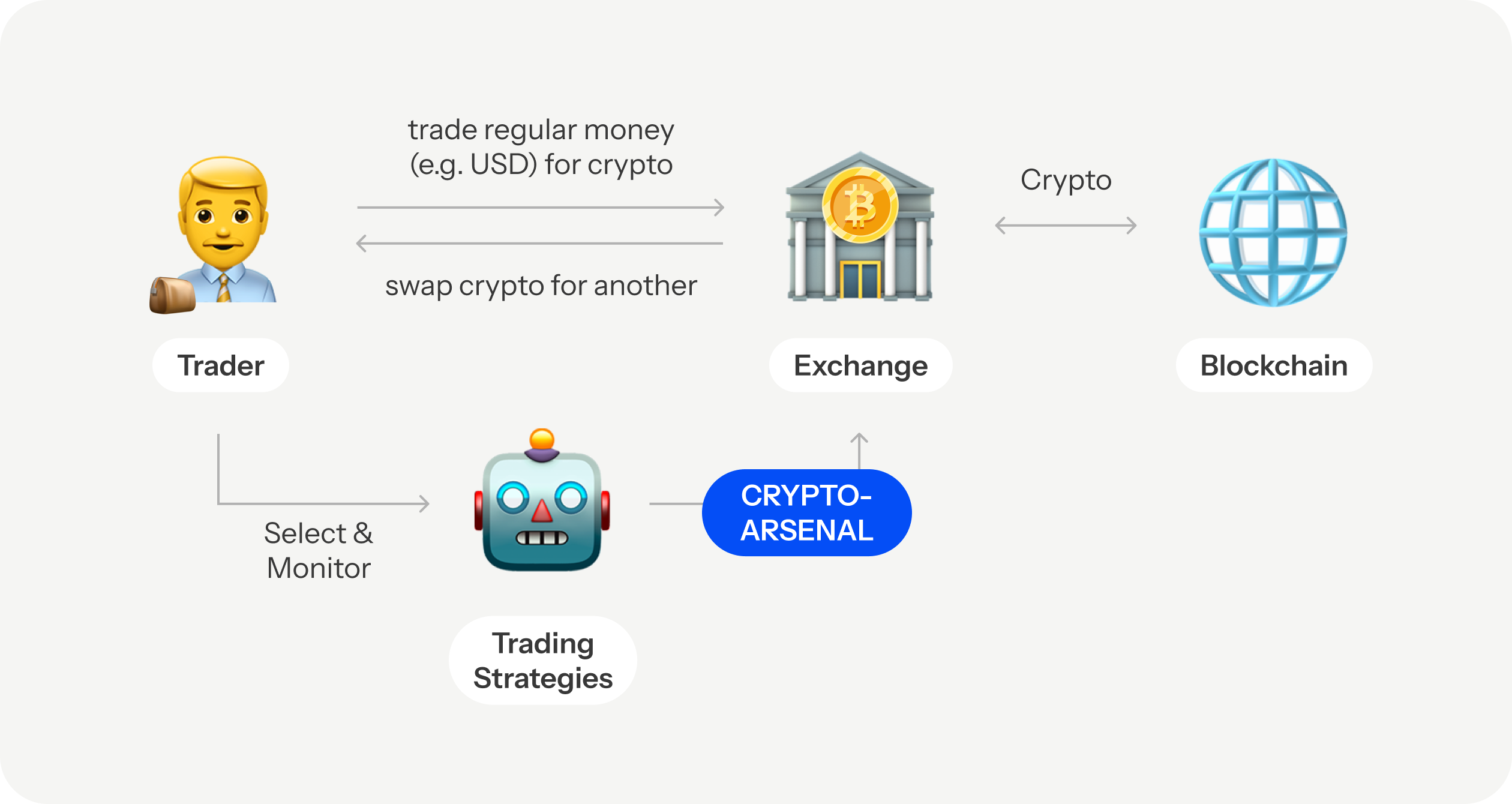 And Crypto-Arsenal is a platform that connects directly with exchanges and provides traders with automated strategies to trade.