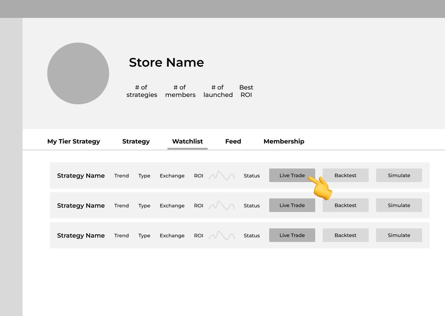 After joining the membership, traders select a strategy, add it to their watchlist, and trade.