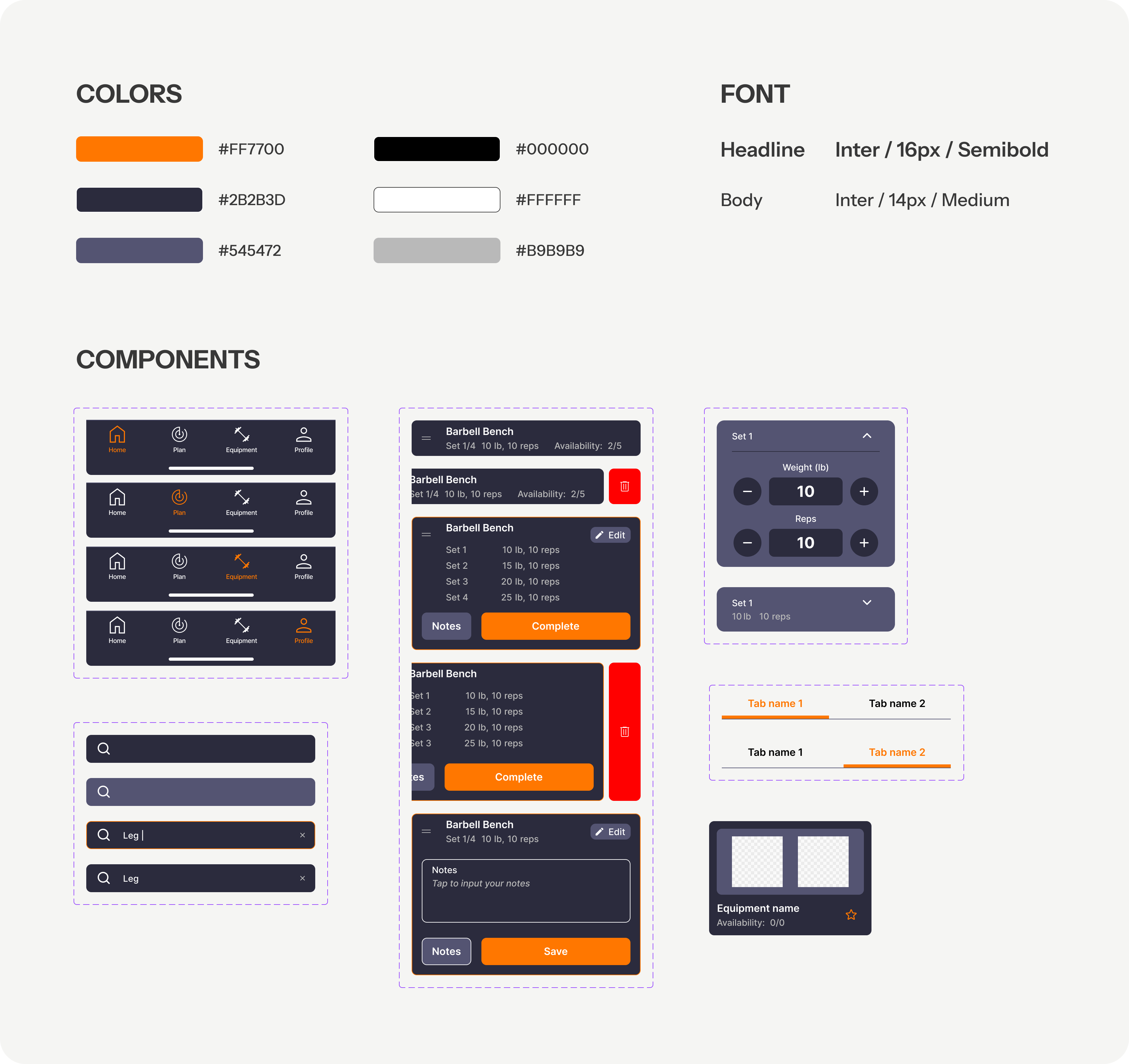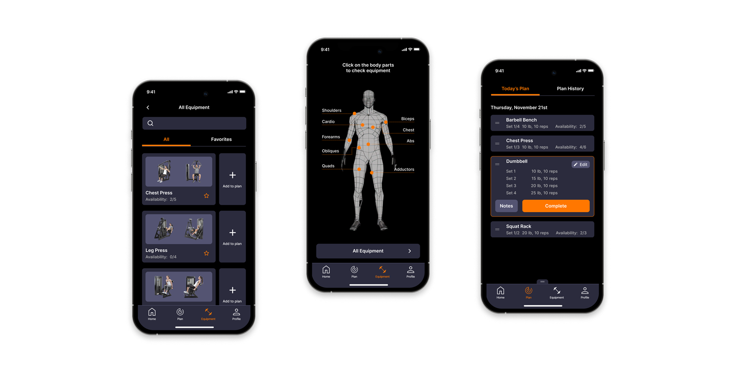 Serves as both a record of users' past workouts and a convenient tool for adding equipment to their new workout plans.