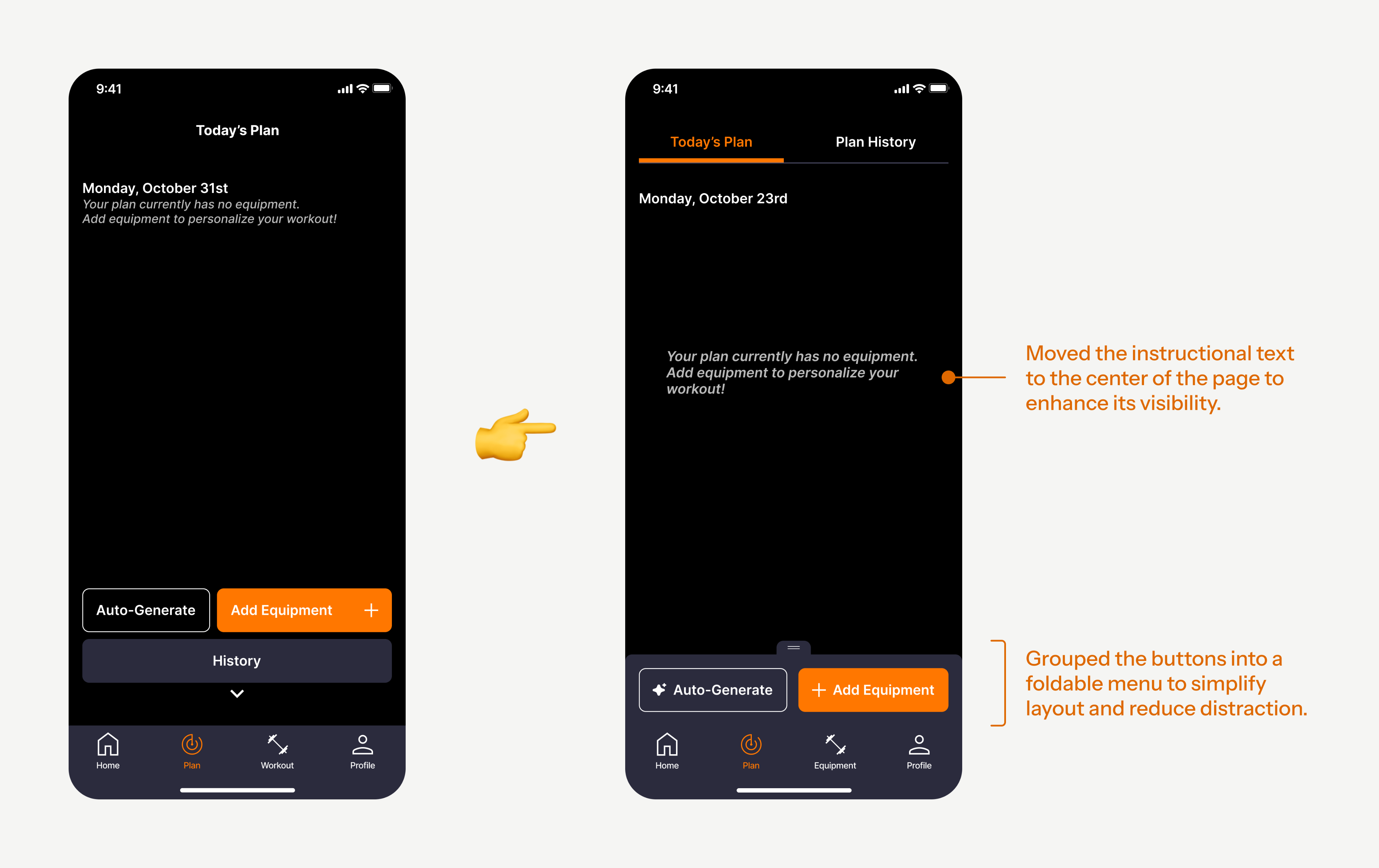 So we placed the instructional text prominently and organized the buttons into a foldable menu to create a clearer hierarchy and reduce distraction.